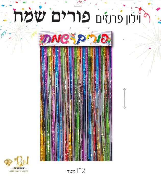 / וילון צבעוני עם כרזה פורים שמח כ2*1 מטר