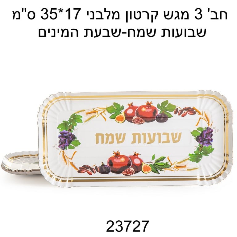 / חב' 3 מגש קרטון מלבני 17*35 ס"מ -שבועות שמח-שבעת המינים