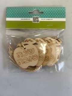 / חב' 6 תוית מעץ בצורת תפוח ק.5ס"מ