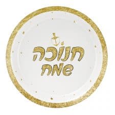 / חנוכה צלחת "7" נייר לבן זהב 10 יח'