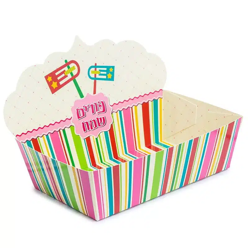 / מגש קרטון מודבק+גב 30/18/8 ס"מ-פורים שמח-דגם ברקוד