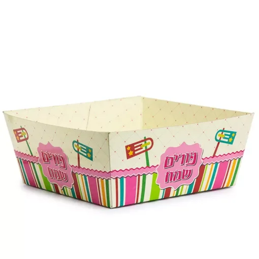 / מגש קרטון מודבק 22/22/10.5 ס"מ-פורים שמח-דגם ברקוד