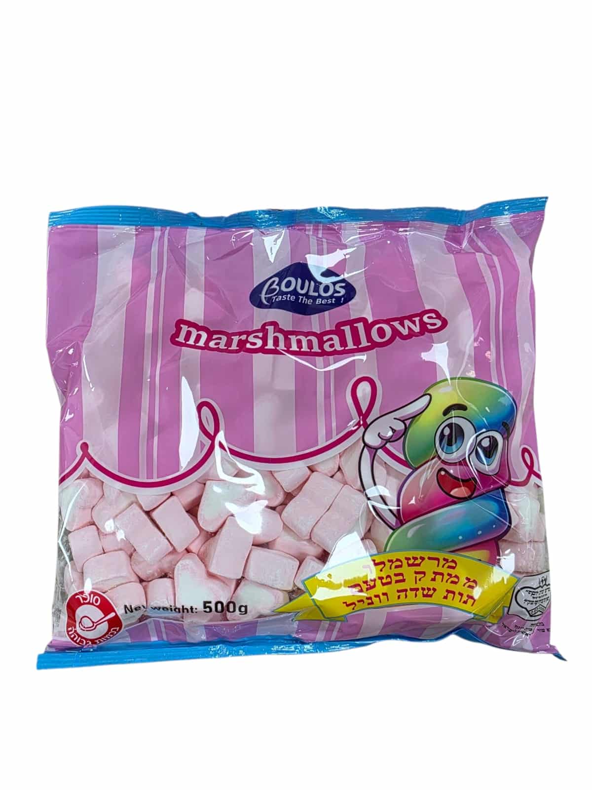 ממתק מרשמלו כריות ורוד,לבן בטעם תות וניל 500 גרם BOULOS