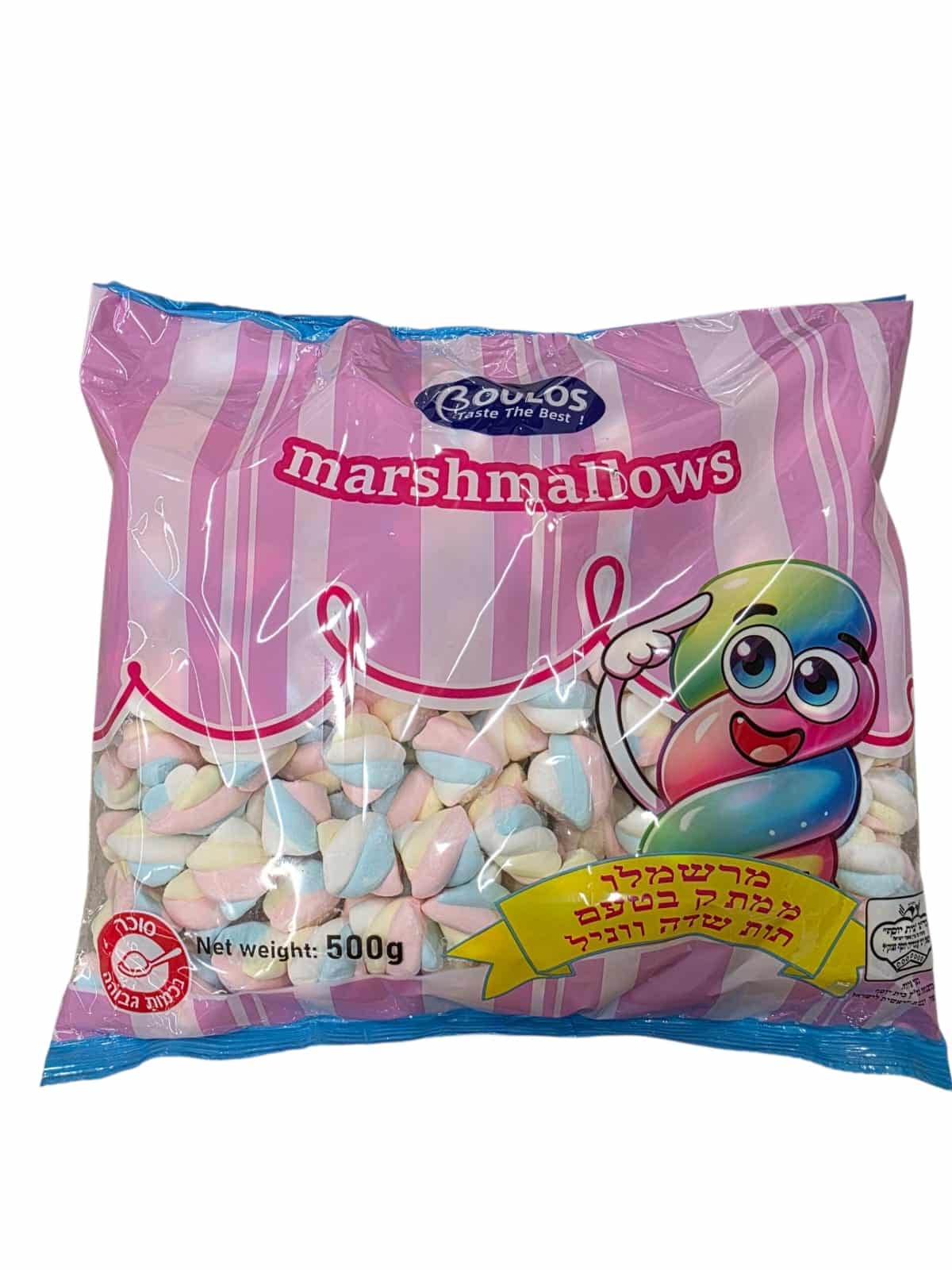ממתק מרשמלו לבבות ורוד לבן בטעם תות וניל 500 גרם BOULOS