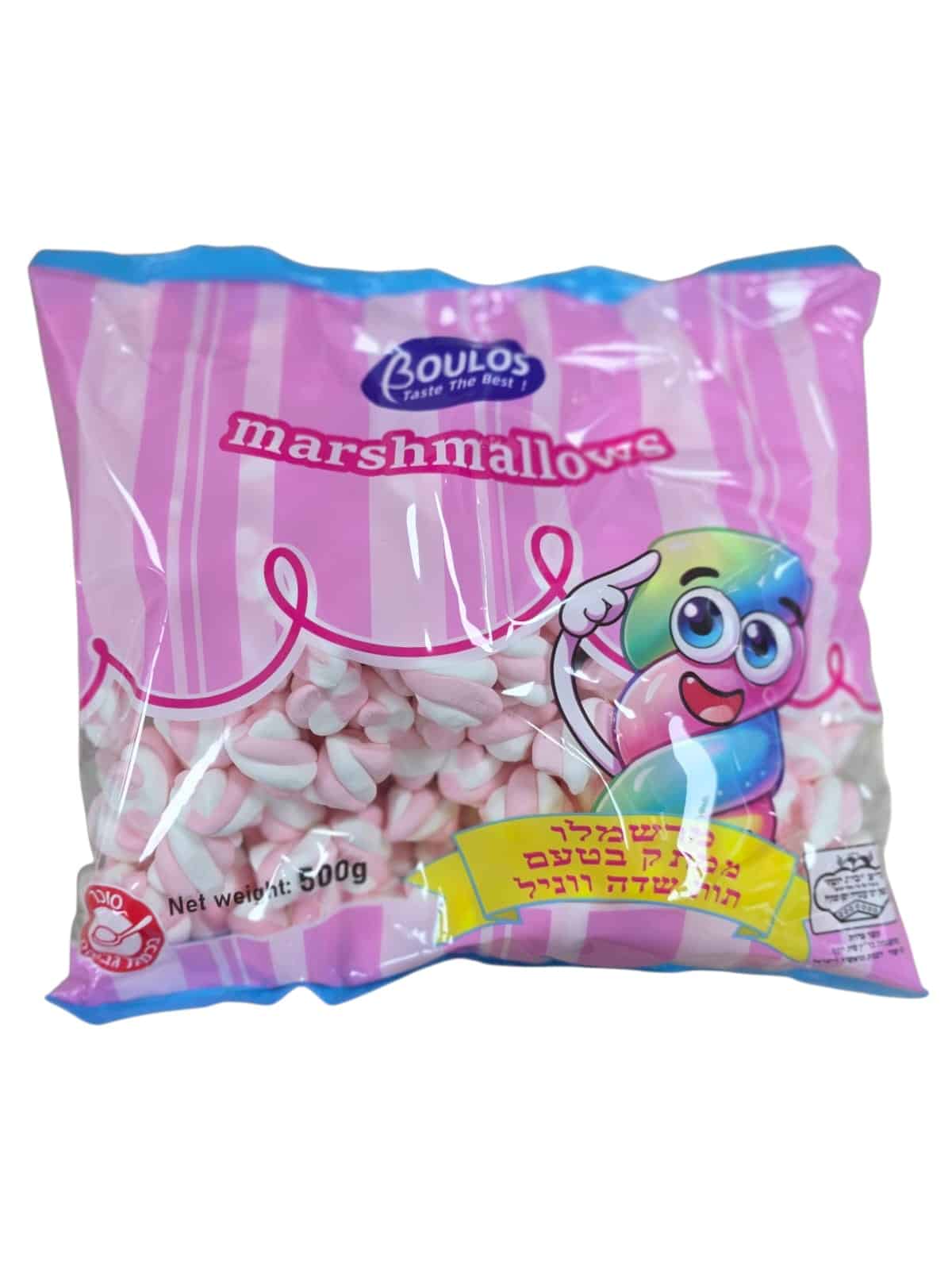 ממתק מרשמלו מסולסל צבעוני BOULOSבטעם תות וניל 500 גרם