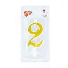 / נר מספר ענק נצנצים זהב ולבן 2