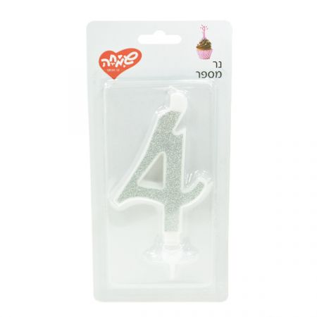 / נר מספר ענק נצנצים כסף ולבן 4