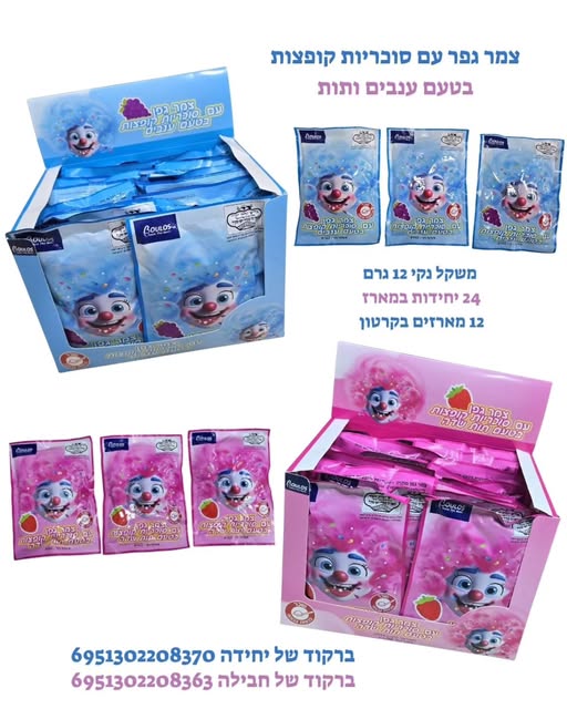 / צמר גפן עם סוכריות קופצות ענבים / תות שקית 12 גרם