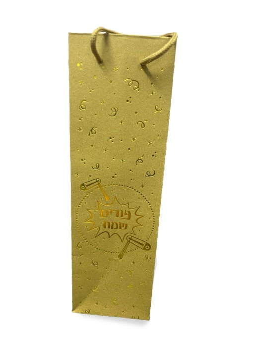 / שקית נייר לבקבוק 11/11/36 ס"מ -פורים שמח- קרפט זהב