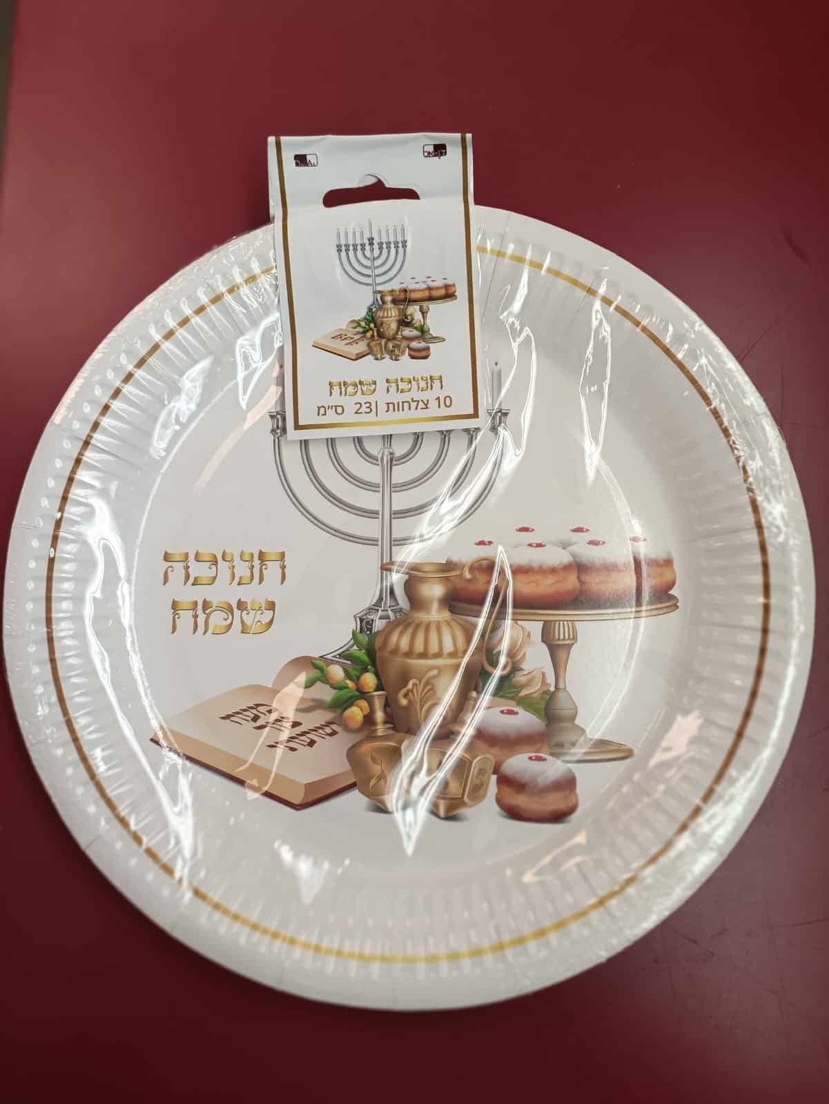 / 10 צלחות נייר חנוכה שמח 23 סמ