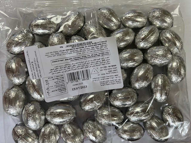 / ASTIR שוקולד ביצים צבע כסף קרם אגוז 400 גר'